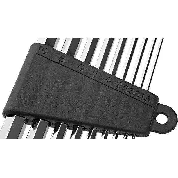 Setet innehåller: 1,5 mm, 2 mm, 2,5 mm, 3 mm, 4 mm, 5 mm, 6 mm, 8 mm och 10 mm skiftnyckel